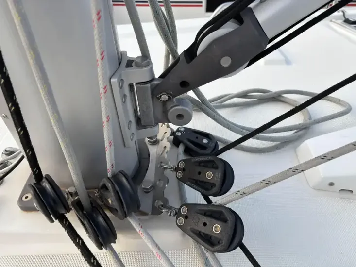 - RUNNING RIGGING MATERIAL: Complete running rigging: Mail halyard, Genoa halyard, with clutch on the mast and cleat, Boom topping lift with cleat on mast, mainsheet, 2 Genoa sheets. Rigging run aft to cockpit (except boom topping lift).