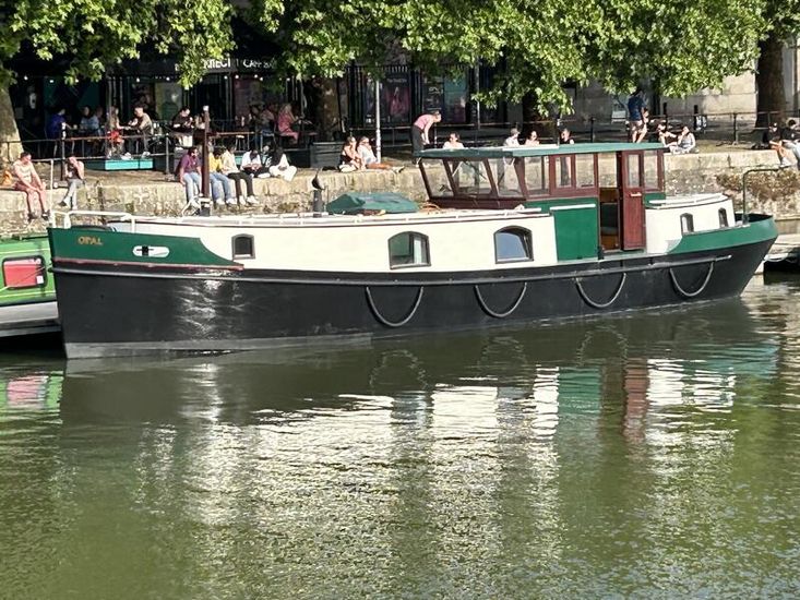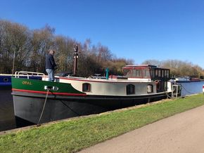 Opal is a Dutch Barge to the Branson Katherine design built by South Holland Fabrications in 2003. She has recently undergone a full hull repaint in epoxy in October 24 with topsides repainted in Spring 25. Her fuel tanks have been recently emptied and cleaned and new fuel added. She has new covers to dog house and wheelhouse and a host of other updates an improvements including a boiler burner rebuild also in 25, rudder re-hung, steering ram rebuilt, etc.