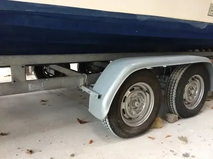 Double axle Bamber trailer (new in 2005) - new hubs, brakes and wheels in 2018, spare wheel - not been in salt water since renewal of axles etc (boat launched via lift in/out onto trailer). Tows well (good balance).