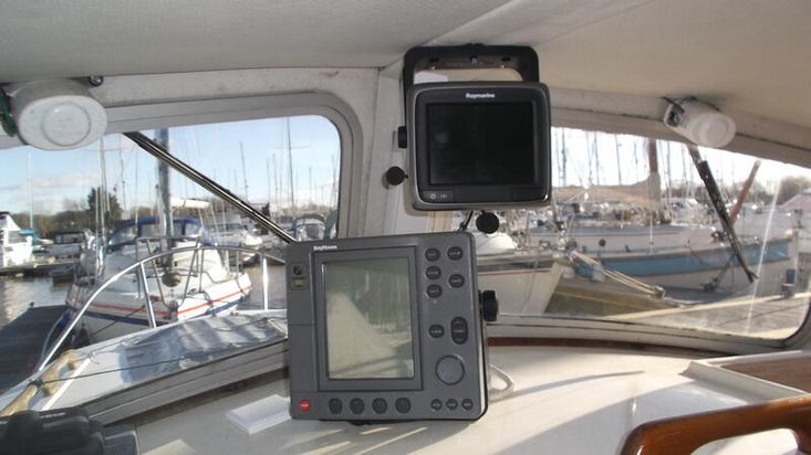 A very unusual example, equipped with Radar, Auto pilot linked to Raymarine Chart plotter giving "fingertip" control of the vessel. Good accomodation with two forward berths(with infill for a double) and a rear full length berth at the rear of the cockpit.