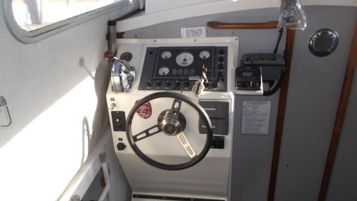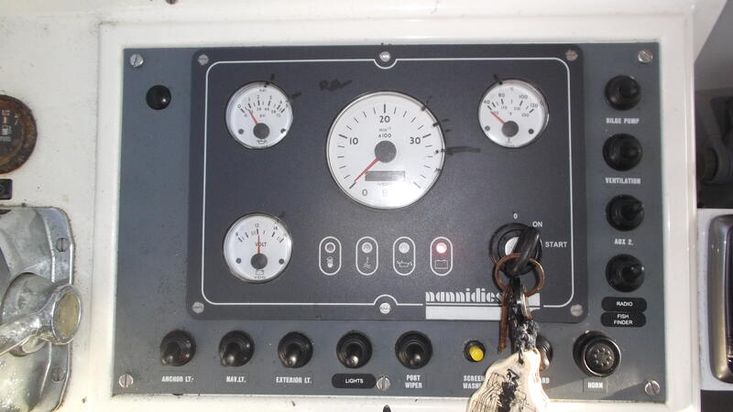 Nav equipment is complete and very efficient. See photos, but the Auto Pilot control can be used to pilot the boat if you are tired of steering! Just a twiddle of the Auto Pilot knob will take you through a crowded harbour.