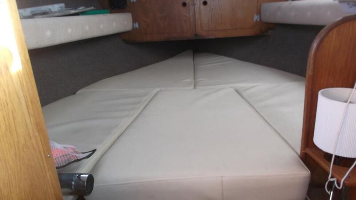 Two forward berths with infill for double, cushions in excellent condition.(see photos) Also a rear cockpit berth with locker space beneath.(photo)NA