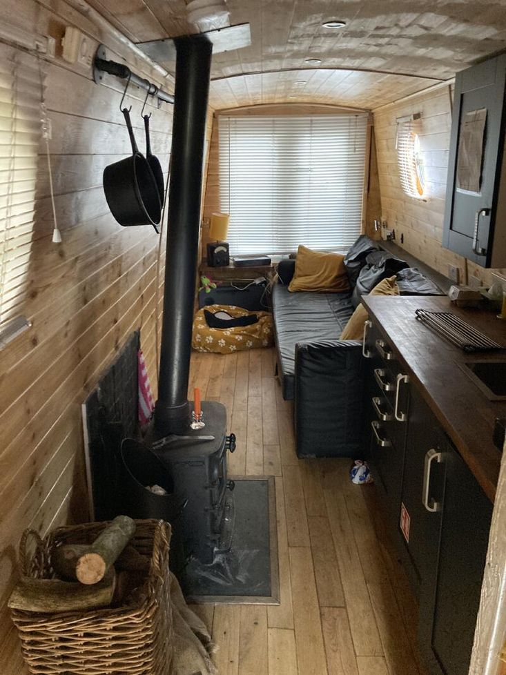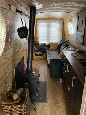 New Calorifier and water pump. Immersion heater. Heated by twin coil - engine or webasto diesel heater heats water - provision allowed for addition of radiators - a new stainless steel retro one included. Towel rail. In addition a back boiler heats water with header tank vented to outside for safety and over pressure valve behind stove.