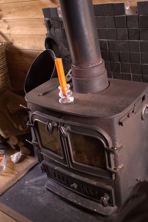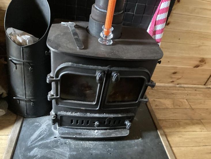 Village stove with back boiler for providing 1 KW of heat to calorifier in addition to webasto or immersion heater and engine.