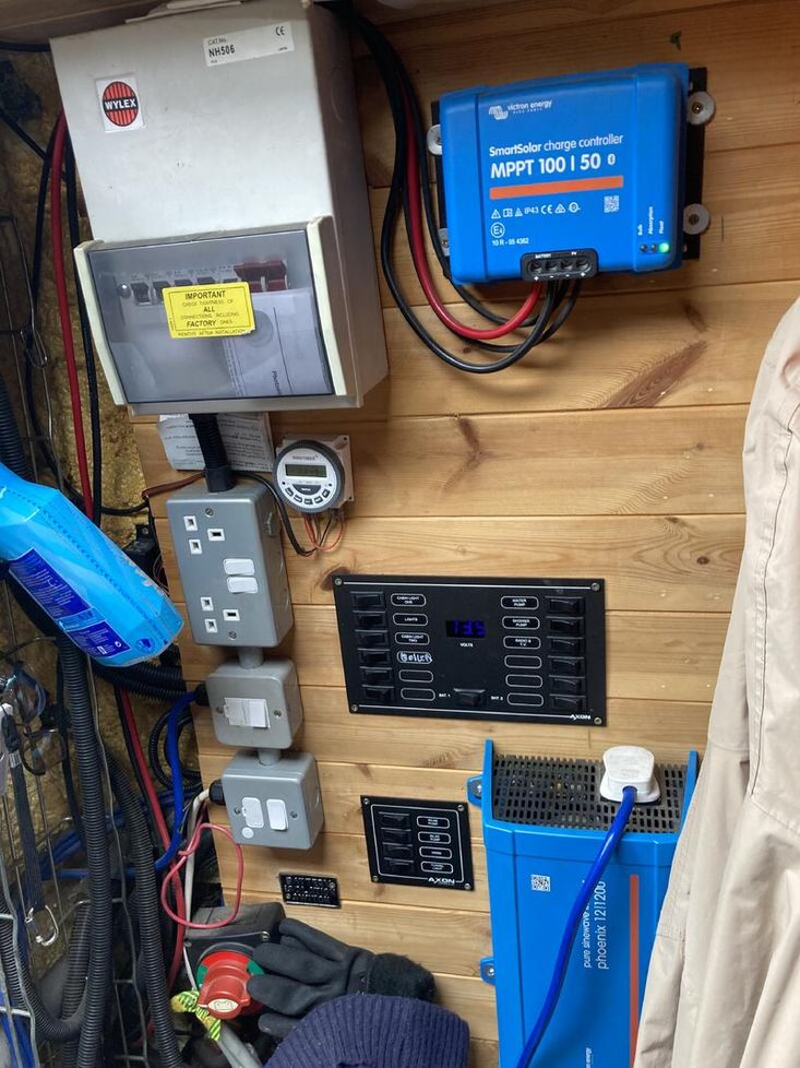 AGM OPTIMA Marine batteries. Solar charging - Victron - large panels give excellent yield. Victron inverter. Both can be app controlled and monitored.