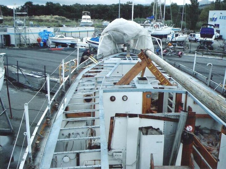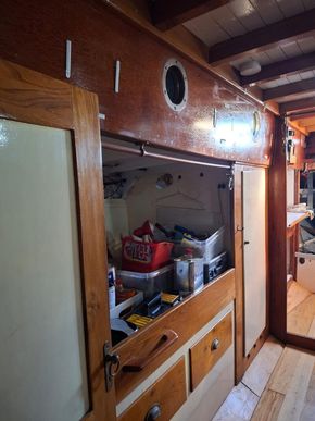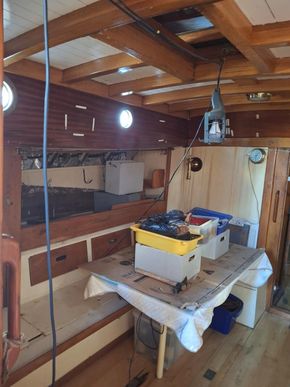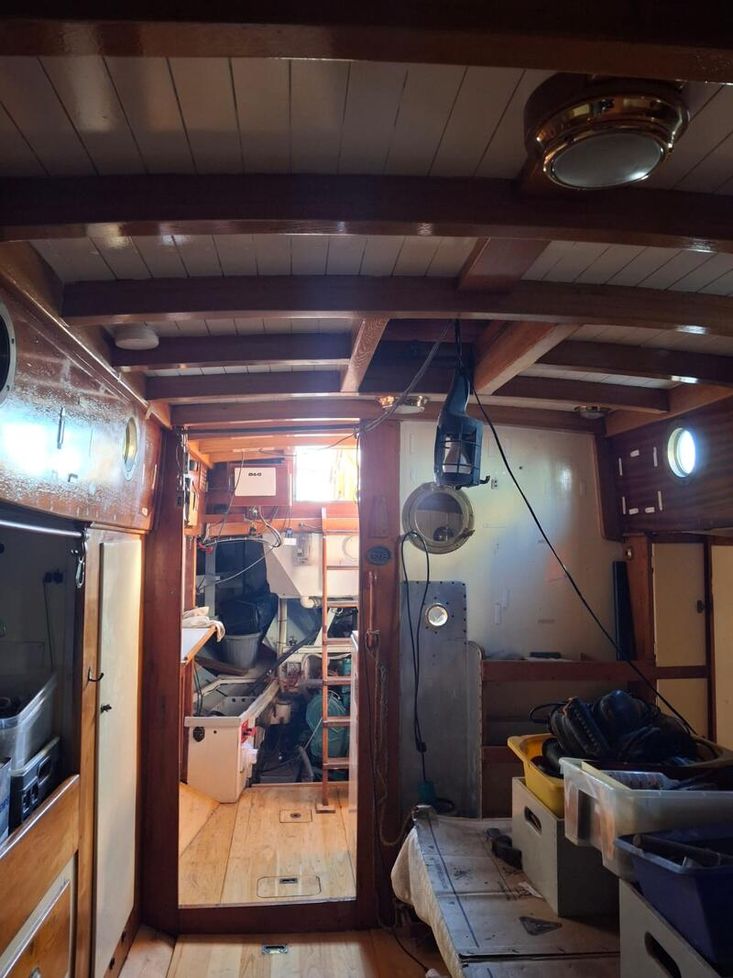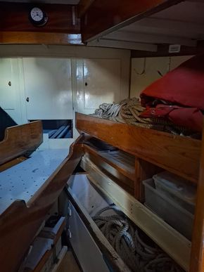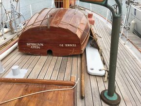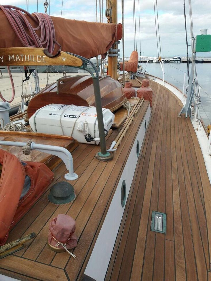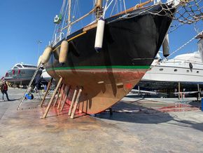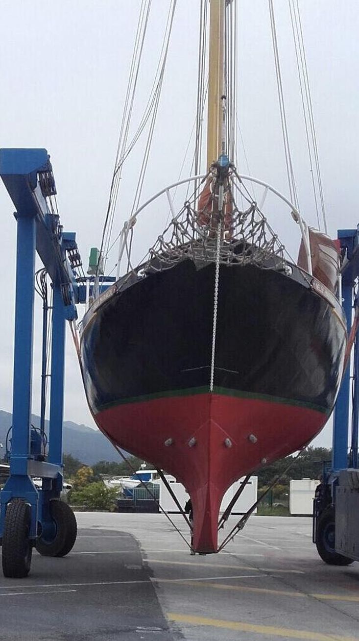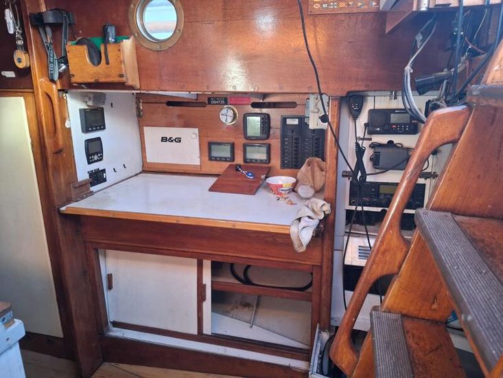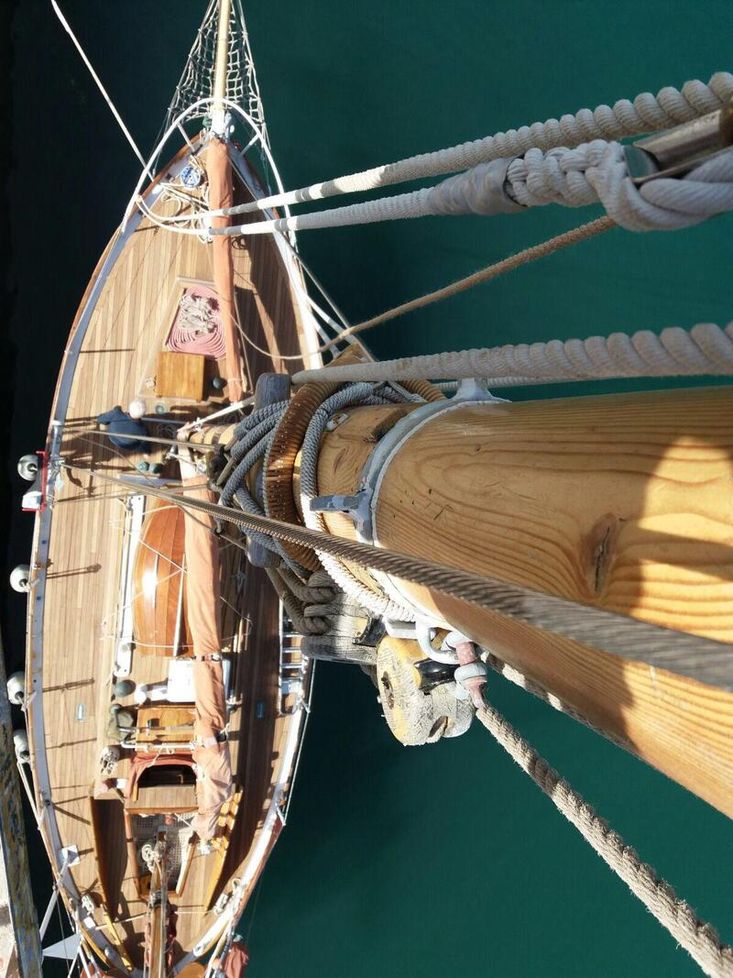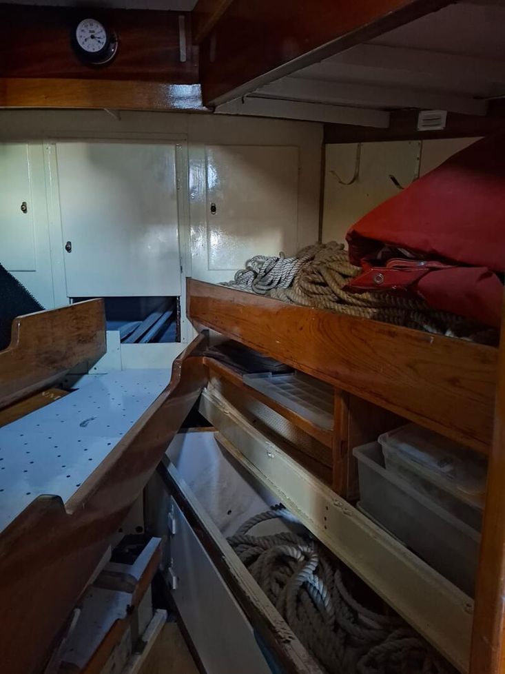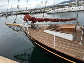 With only 4 previous ownerships since i sold it to the current one 31 years ago and since completing its twelfth transatlantic plus much med sailing the owner has undertaken an extensive restoration of the boat to insure its life will continue for many years to come.This includes a re-plating to 200mm above waterline of the hull following the 2022 survey recommendation .Douglas fir main mast , boom and gaff replaced along with rigging last ten years. Oak rudder fitted circa 2000.Full dacron Sail inventory, lines , blocks (many varnished and ready to go on when running rigging re fitted).