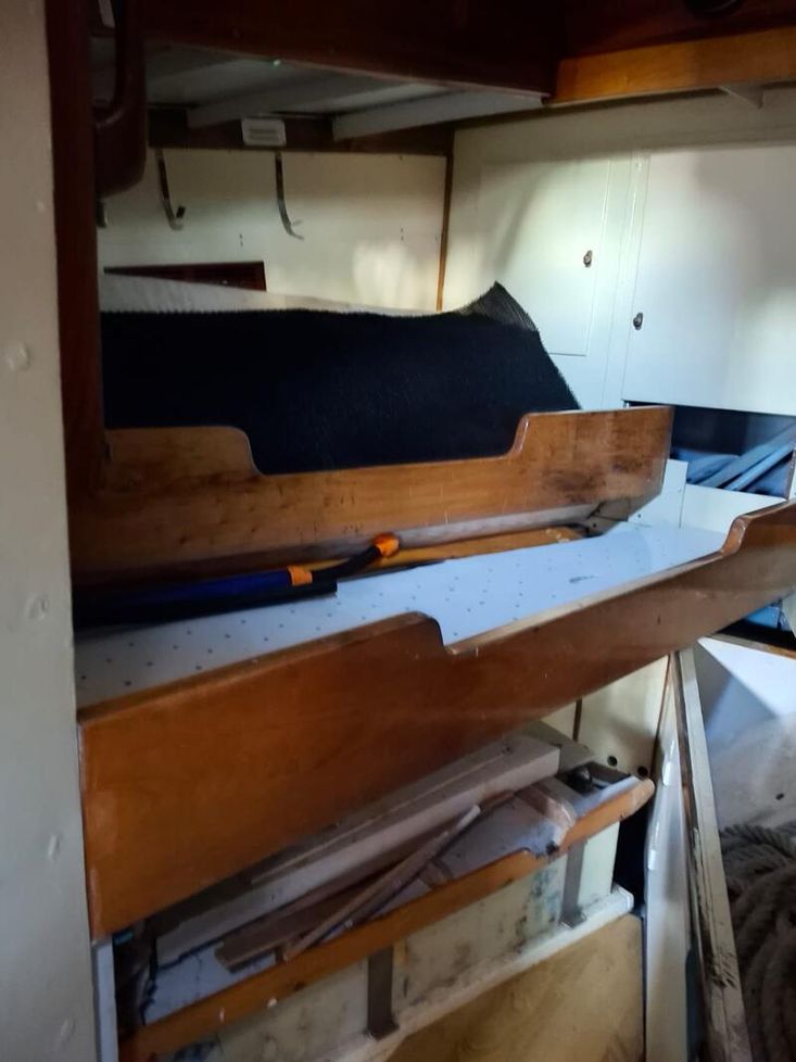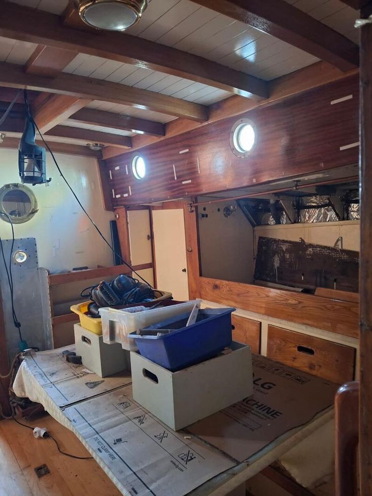 Also, photo of interior show it as in its current condition with engine area being worked on hence sound insulated cover and bunk area not in situe.
