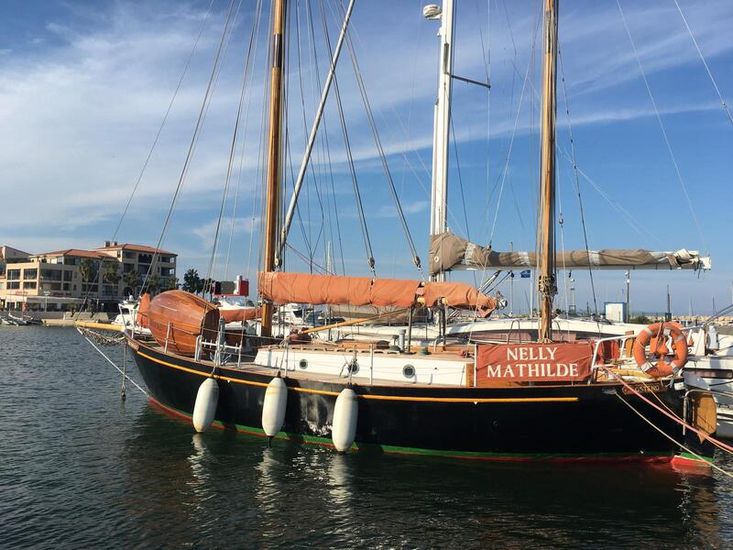 Nelly Mathilde is a solid built steel gaff ketch.52’ over all including bow sprit. Interior wood work in elm.Cutter rigged cruiser suitable for long distance sailing/live aboard.Fully equipped.