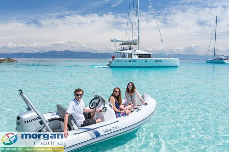 Highfield Classic 420 aluminium RIB with Honda BF50 LRTU outboard and capacity of 8. This RIB offers extra comfort from the double hulled deck. The high quality finish and luxury look belies the fact that this range of tenders has been designed to work hard. A durable aluminium hull coupled with full length keel guards make these ideal for those beach-hopping days with friends and family. The large weight savings achieved compared to equivalent GRP tenders means you’ll enjoy impressive performance with smaller engines, and with excellent payload capacities, the Highfield Classic 420 really does offer a tender for everyone. 4mm thick powder coated marine grade aluminium. Valmex PVC tubes - 1100 DTEX coated fabric. Including rigging and fit out with battery. Design category C. NB - library photos may not reflect specification of boat.