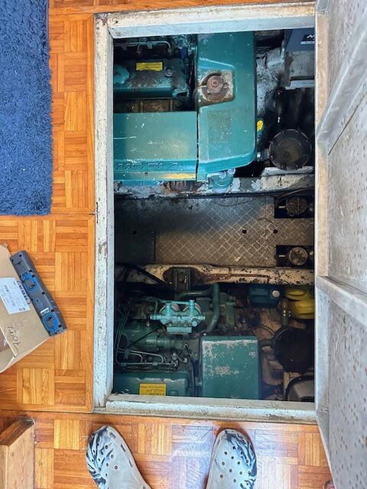 She is powered by two Volvo Tamd 61A 302 HP turbo diesel engines, which power the boat through two driveshaft's.