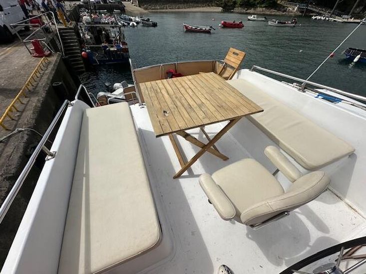 She cruises happily at 10 knots at 1,800 revs, if you rev her to 2,500 Revs she will do 14/15 knots but you are really pushing water at that stage and indeed using lots of extra fuel.