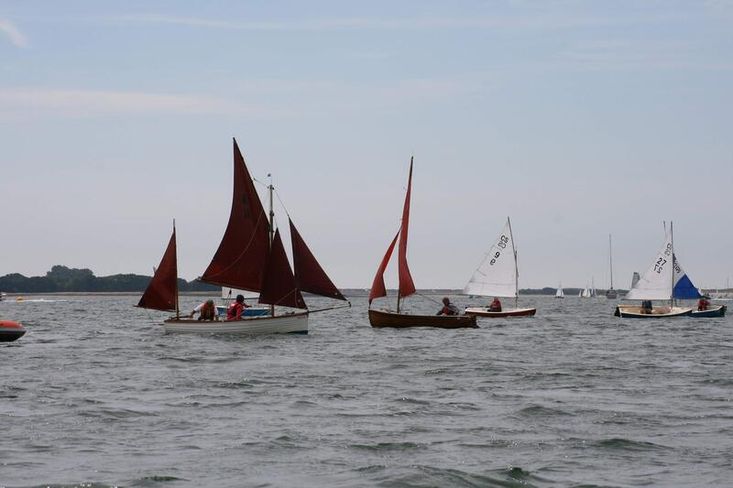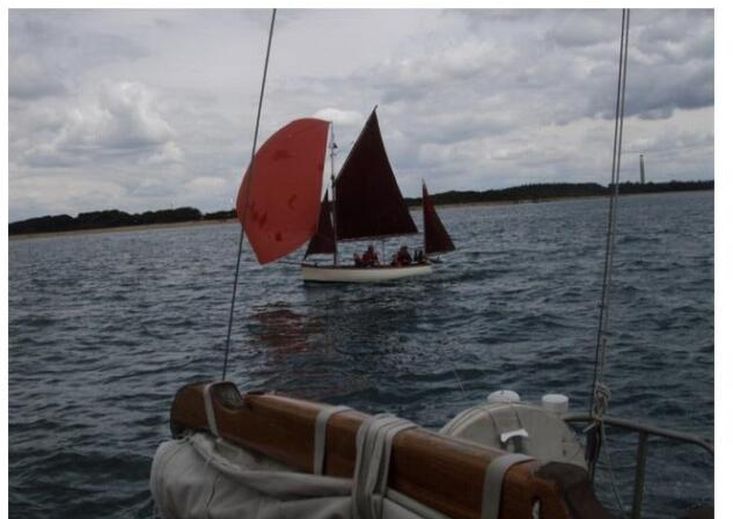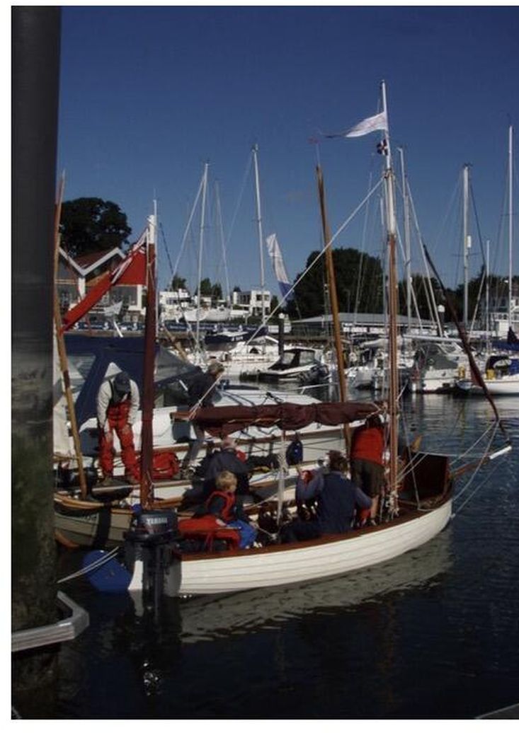 Rig - The masts and spars are Canadian pine and were all re-coated with Deks Olje for the 2024 season; the standing rigging is stainless steel with cod line lanyards; the outer jib is fitted with Wykeham-Martin roller furling gear, the inner jib with spring-hanks. The foresails, main and mizzen [total sail area 135 sq ft] are all tan coloured, in fair condition and have been professionally washed and maintained every season since 2010; a topsail with yard and a blooper have occasionally been set and are included. The blooper was set on a carbon fibre topmast that has since been cut down to form the topsail yard. All blocks are Tufnol with Davey's bronze cleats, fittings and belaying pins. The traditional looking running rigging [laid not braided] is in good condition. The heavy galvanised drop plate is raised and lowered with a block and tackle secured to a bronze cleat on the mahogany ply centreboard case.