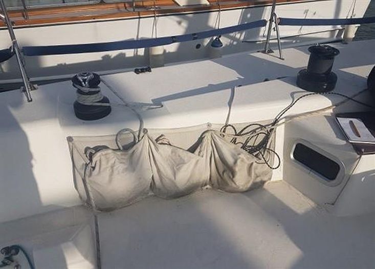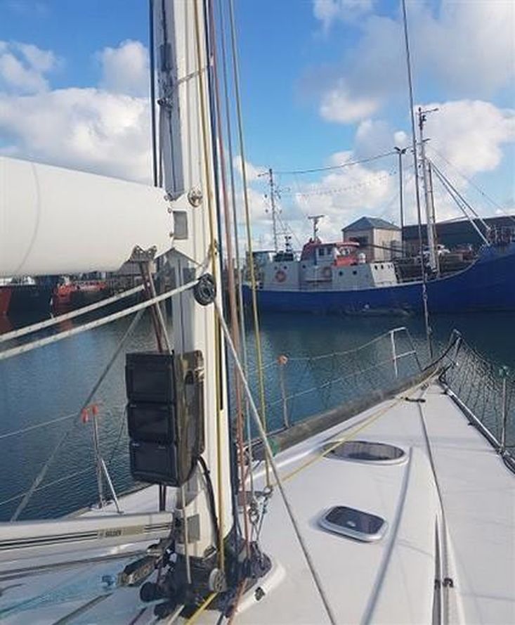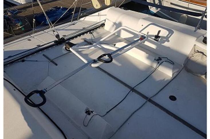 9/10ths fractionally rigged sloop. Marstrom carbon fibre double (adjustable) spreaders, keel stepped mast. NKE hydraulic mast ram and heel screw adjuster. Discontinuous solid rod rigging. Harken twin groove headfoil (new 2017) with Foil saver pre-feeder. Forestay load cell (not connected). Hydraulic backstay tensioner located under cockpit operated from bridgedeck. Selden telescopic rod kicker with cascade. Carbon fibre boom and spinnaker pole. Lines led aft to Spinlock clutches. Structure for optional asymmetric fixed bowsprit. Four "one touch" winch handles. Full symmetric/asymmmetric spinnaker running rigging including light spinnaker sheet.