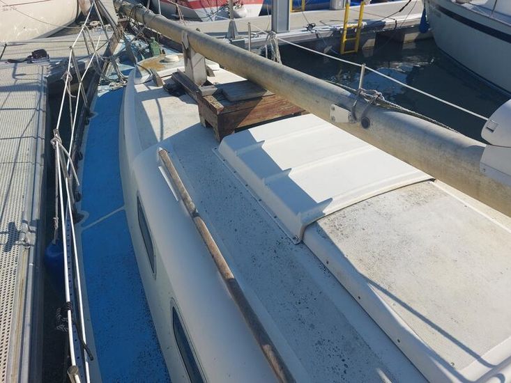 Aluminium spars, stainless steel standing rigging, full sail wardrobe, anchor, anchor windlass, forehatch, stanchions, guardwires, cockpit grating, warps, fenders.