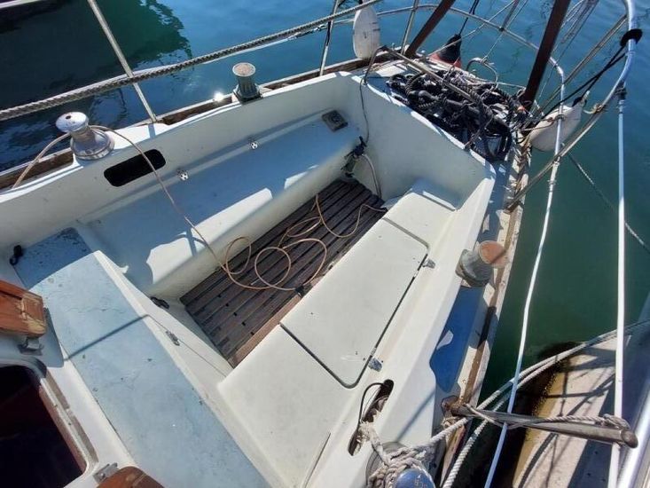 The Trintella 29 is a classic, long-keeled, heavy displacement offshore cruising yacht known for its elegant traditional lines and seaworthiness. Designed by E.G. van de Stadt, it's considered a great design and well-suited for family cruising by two people. The boat features a reinforced GRP hull and a one-piece deck, with joinery in oiled teak or afromosia.